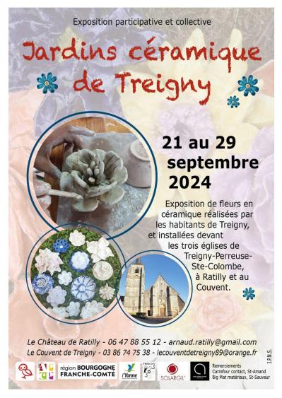 Exposition temporaire, collective et participative hors les murs, sur le thème «Jardins céramique de Treigny», installation de fleurs en céramique devant les 3 églises de la Commune Treigny-Perreuse-Ste-Colombe, au château de Ratilly et au Couvent, réalisés par les habitants des 3 communes, de l'école primaire et de la maison de retraite de Treigny.